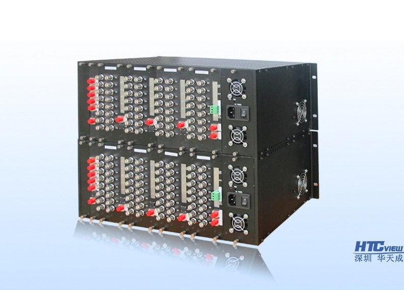 HTCview 72路视频光端机采用国际最先进的数字及光纤高速传输技术,将72路视频及多路RS-232/485/422数据、电话语音、以太网等信号在单芯或双芯光纤上无失真、高质量传输。